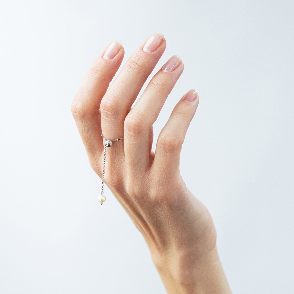 Каблучка має рухому підвіску - кульку, що дозволяє зручно регулювати розмір кільця.