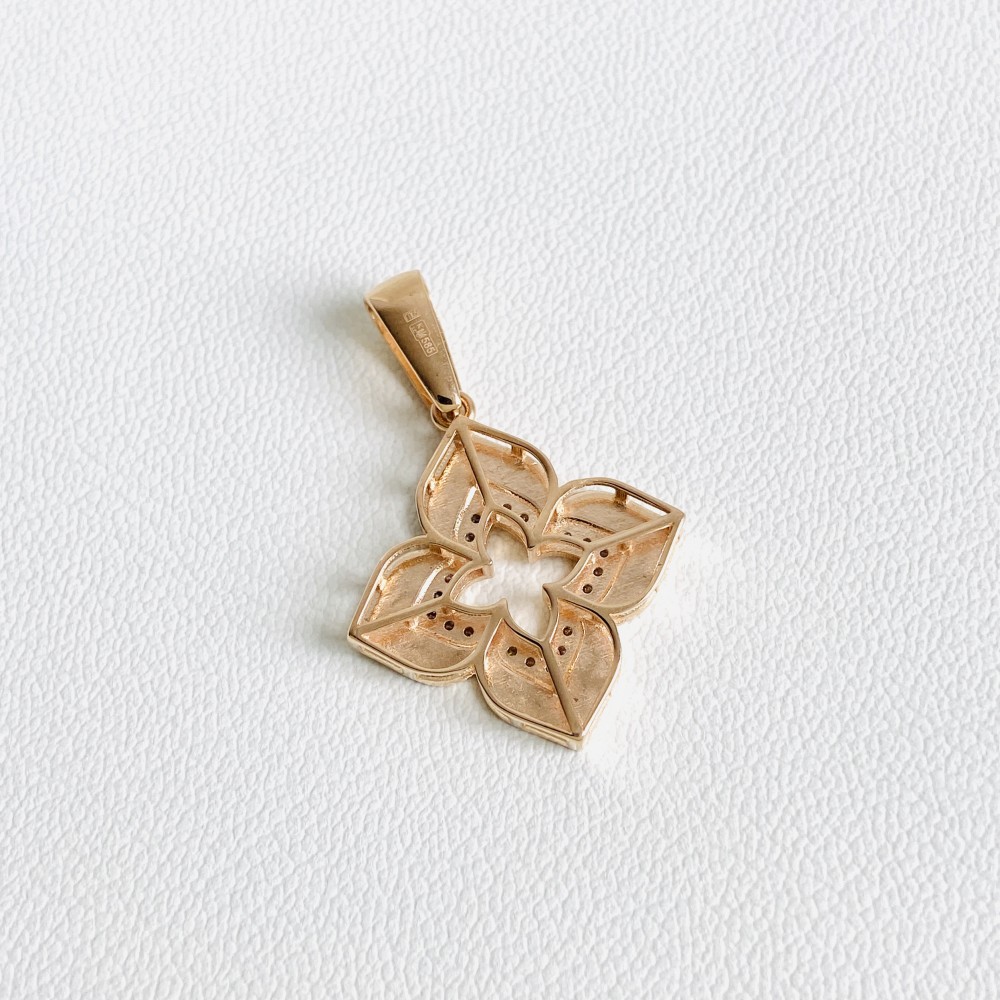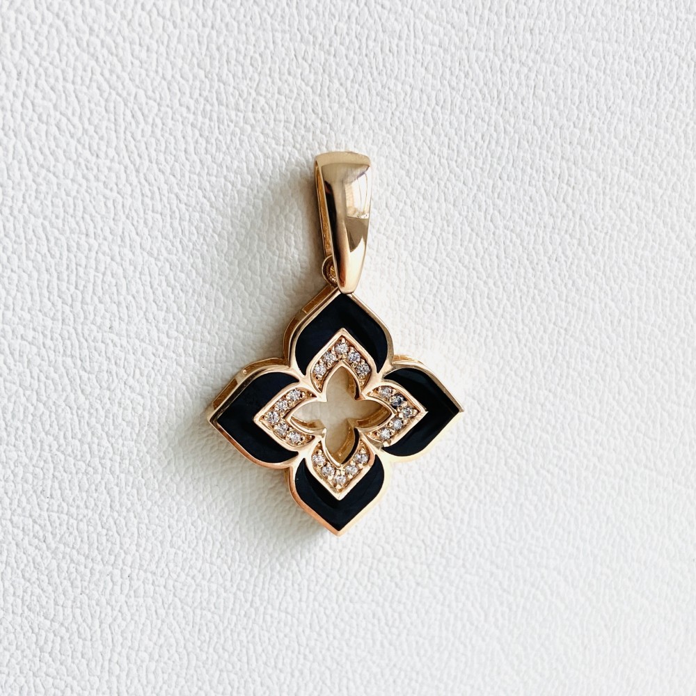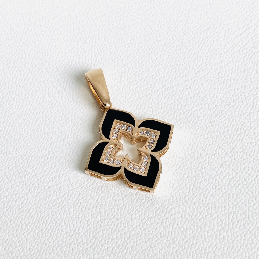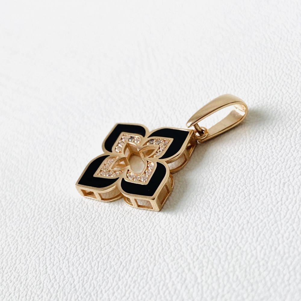 Підвіска "Конюшина" в червоному золоті (емаль та фіаніти) Пв2068